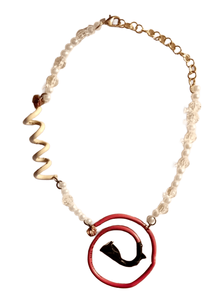 made with pearls & recycled electrical wire